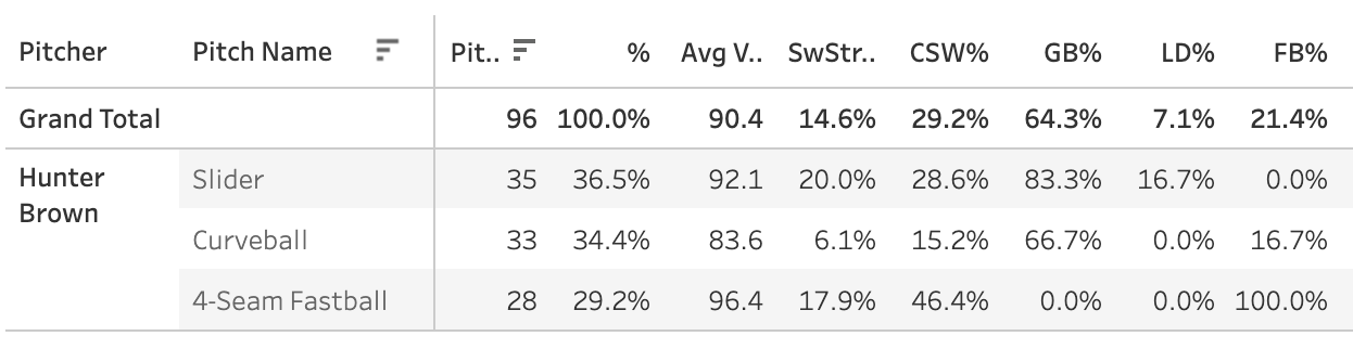Hunter Brown's SL usage (36.1%) up 20.4 points