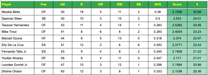 Magic Formula Qualifiers - Hitters - Last 3 Weeks