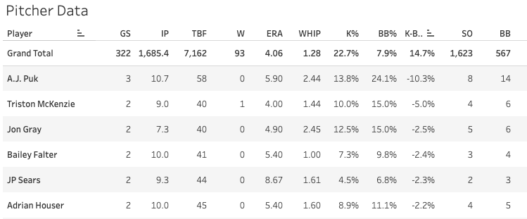 Sawyer Gipson-Long (A - DET) 99 IP 23.8% K-BB