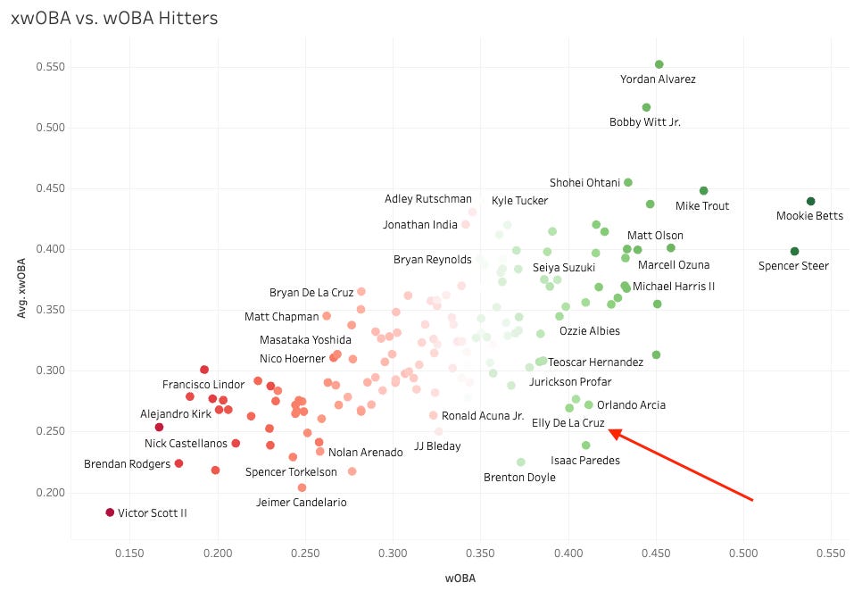 So funny to see Oneil Cruz on the list too. He’s had a very similar season to Elly so far, because they are almost the same exact player, it seems.