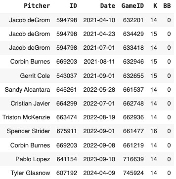 That was just the 12th start since 2021 with at least 14 strikeouts and no walks: