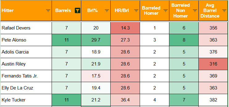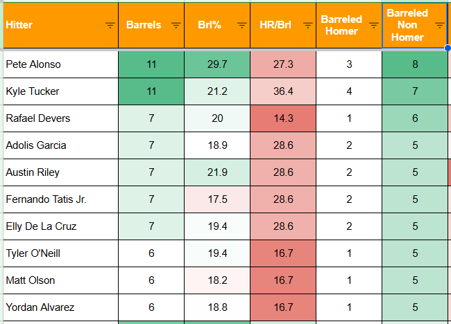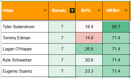 In that vein, here are your lowest HR/Brl rates among hitters with at least seven barrels.