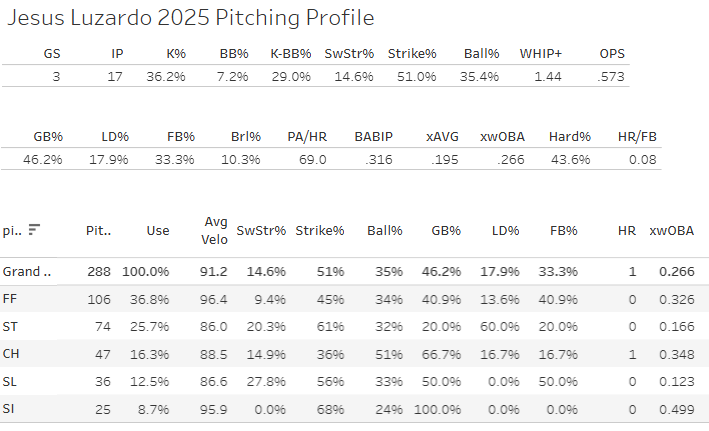 He’s given up just one homer and that .266 xwOBA is pristine. The 35% Ball% isn’t fantastic, but it’s good for him and more than good enough to play extremely well with the 14.6% SwStr%. Luzardo has looked fantastic, and it’s starting to look more and more like we’ll finally get that breakout season from him.
