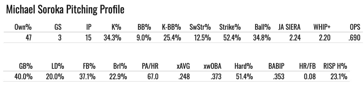 You can’t be very confident in Soroka, but he’s firmly in the 15-team league discussion, and he’s a viable streamer in good matchups if nothing else.