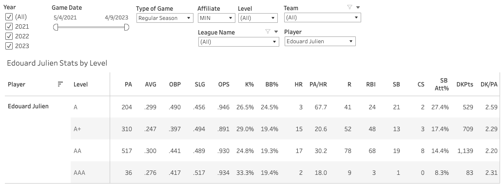Some baseball fans on Twitter treat their team’s top prospects like they are their own children. I have learned this the hard way as the midwest mob has come after me for my criticisms of Jordan Walker, and now of Edouard Julien. The Twins prospect is getting the call-up after Joey Gallo has hit the IL.