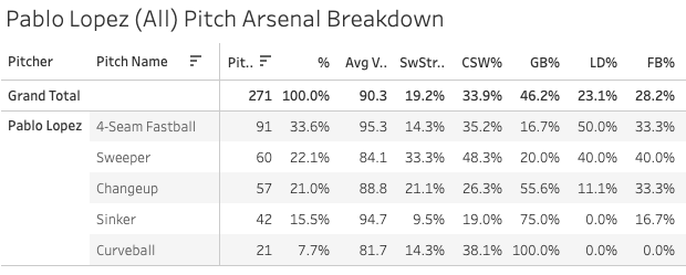 Pablo Lopez - 71 TBF, 29.6% K-BB%