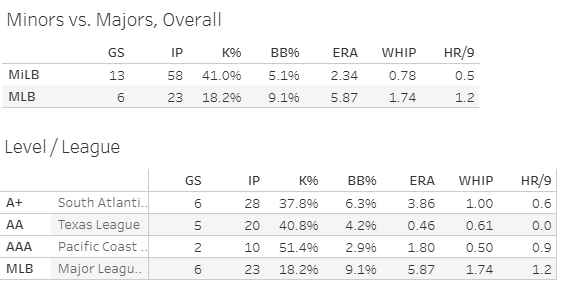 I would say there’s enough in the pitch mix to keep him a “fine” fantasy starter, if nothing else, and there’s plenty of upside with him given the early numbers we have seen. I think you’ll get plenty of clunker starts where the home run ball hurts him, but these first 18 innings are pointing toward him having a pretty decent K-BB%.
