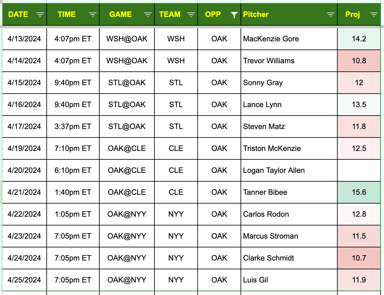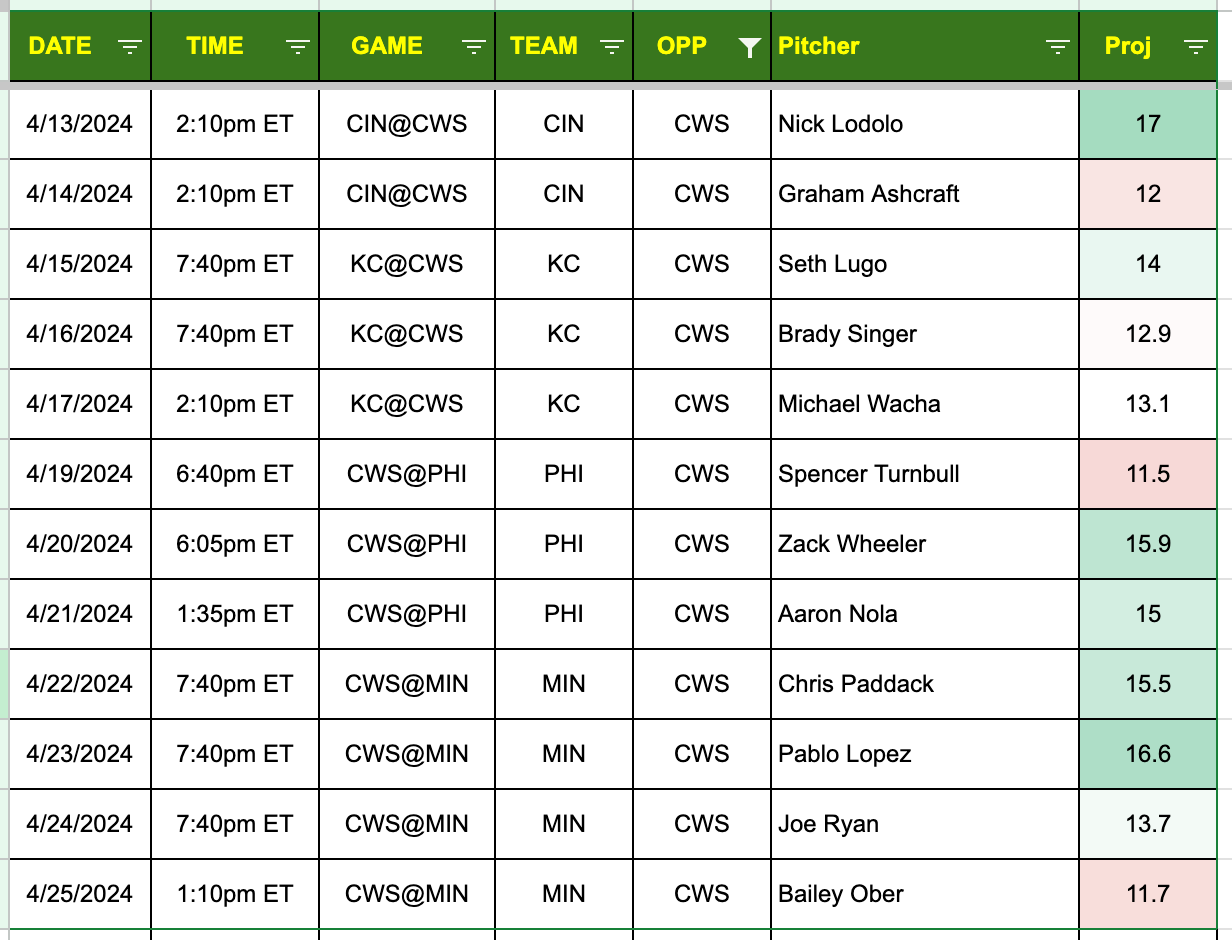 And I also have a daily automated tweet that finds the next handful of probables against my favorite teams to pick on. What a great guy I am.