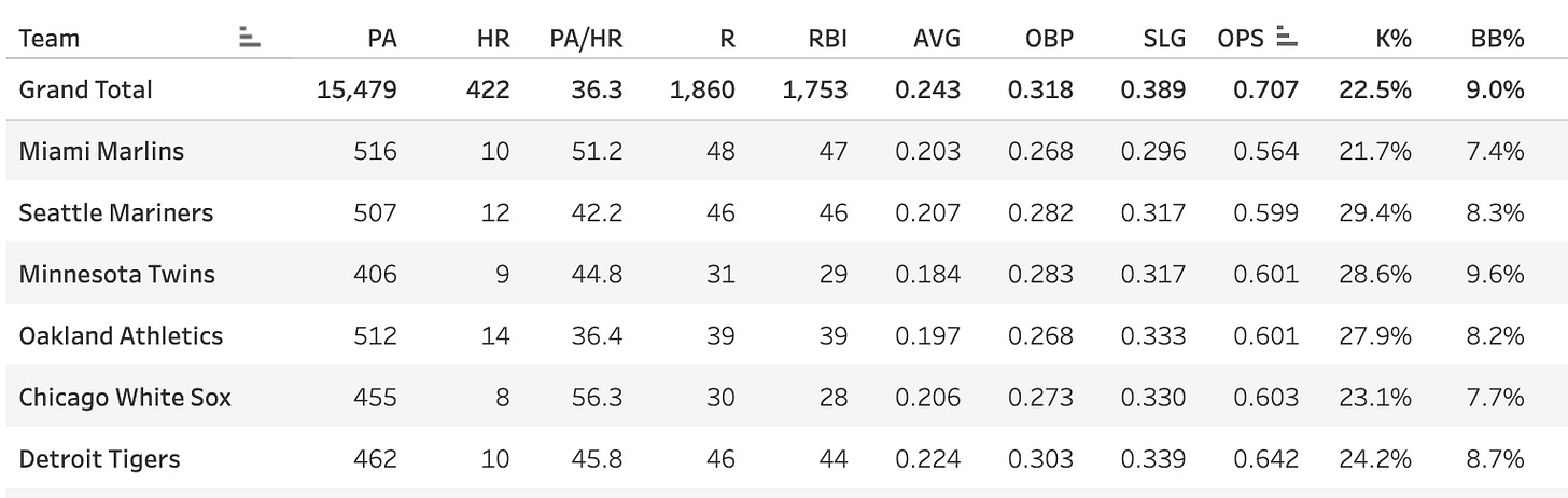They aren’t the two worst lineups in the league by the numbers, but I’m sure they’ll get there. The White Sox lineup is just so, so bad without Luis Robert in it (and even with him). Andrew Abbott ran through 7 innings against them giving up four hits and one run, and he did it without even looking good by the numbers (7.8% SwStr%, 44.7% Strike%, 35% Ball%). There’s just nobody in that lineup that is going to make you pay.