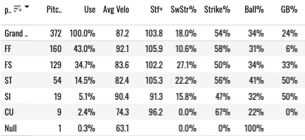 The fastball is landing for strikes and he’s racking up whiffs and punch-outs with the splitter and sweeper.