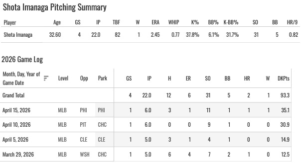 Good morning! Especially to those of you who have Shota Imanaga on your fantasy teams.