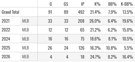 I’d be a lot more willing to buy in if he hadn’t put up a 10.5% K-BB% in 2024 and then a 5.5% mark in 2025.