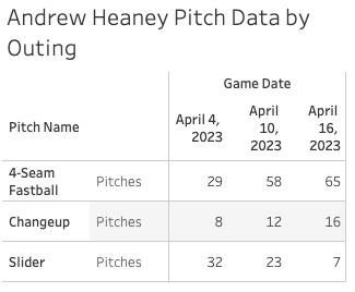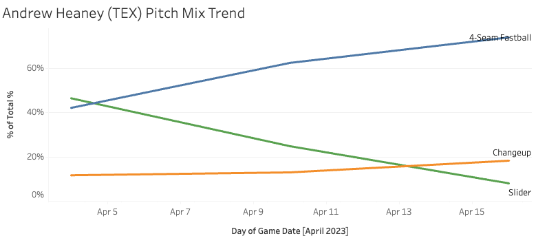Andrew Heaney's FF usage (73.9%) up 12.4 points