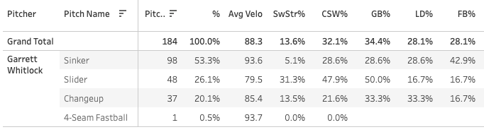 Garrett Whitlock's SL usage (31.3%) up 12.6 points