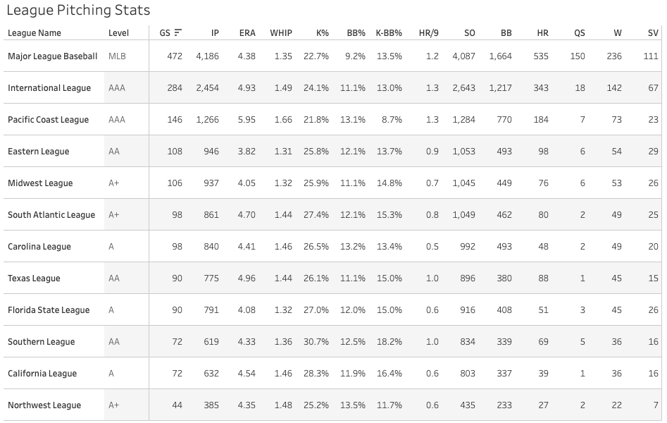 Let’s check out pitching stats by league since we now have had more than a week of games at every level: