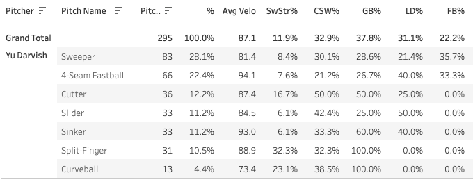 1. Yu Darvish (SD): 19.0 SwStr%, 41.0 CSW%