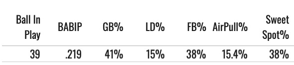 The .354 BABIP is high, but the 44% Sweet Spot% and launch angle profile makes him look like a higher than average BABIP guy. Maybe .325 is a reasonable expectation?
