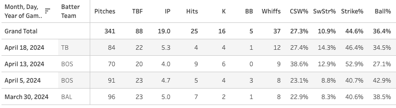 Tanner Houck - 105 TBF, 34.0% CSW%