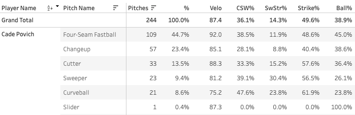 Joe Ryan - 70 TBF, 33.7% CSW%