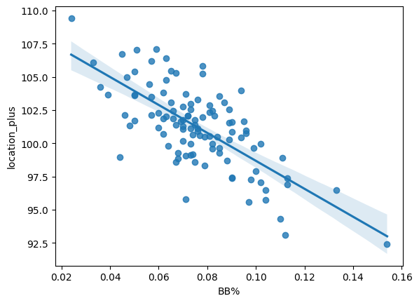 That’s a huge SwStr%, but he doesn’t have the command to get him into ace territory at this moment. The Stuff+ from his first three starts was at 111, and the Location+ was at 103, so that’s actually pretty great. If you’re wondering if Location+ correlates with BB%, I can help with that: