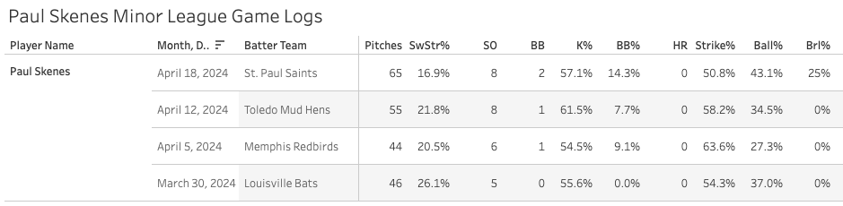 We have 3-5 starts for AAA pitchers done now as well, so we can look at some standouts there. We’re going to need some SP help this summer with all of these injuries. You should pick up Paul Skenes at this point if he’s available. It’s pretty clear to me that he’s only 2-3 weeks away from being in the Majors, and he’s going to be good.