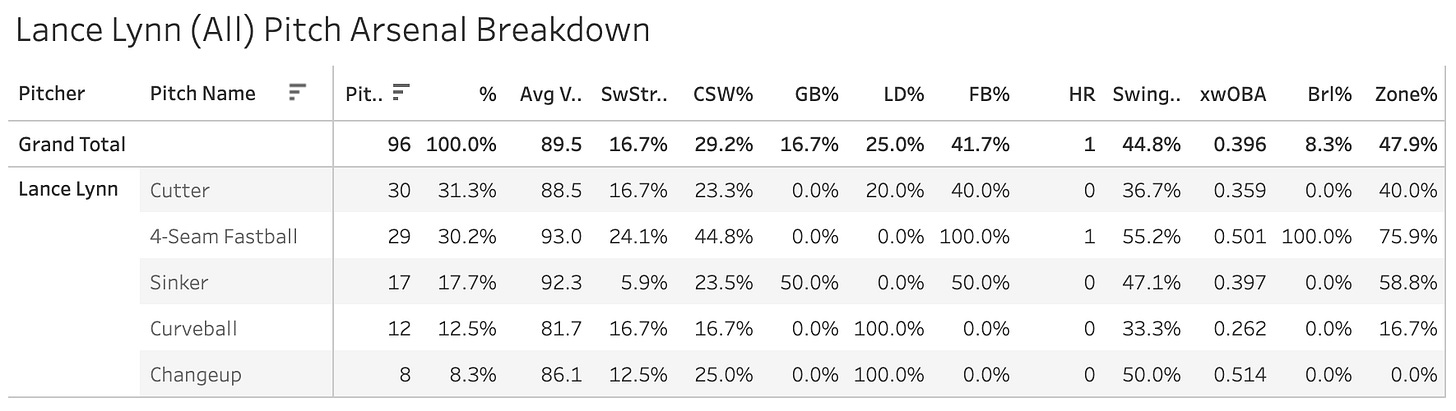 6. Lance Lynn (CWS): 16.7 SwStr%, 29.2 CSW%