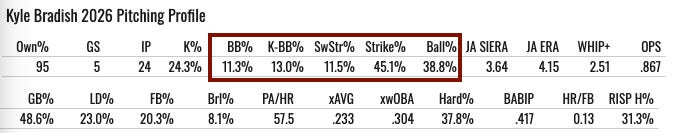 2026: 24% K%, 8.6% BB%, 1.15 ERA, 0.93 WHIP