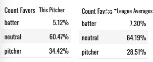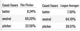 This classifies each count as neutral, favorable to the pitcher, or favorable to the hitter. Here’s how that classification works, if you’re curious.