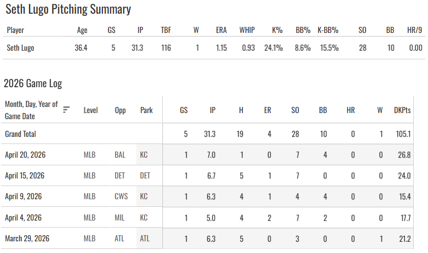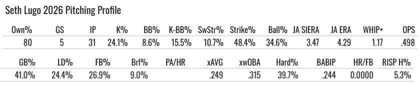 We go through dozens of hours of looking at SPs all offseason to find the breakouts, we look at Stuff+ and advanced metrics and minor league data, and then it turns out the answer to the “Which SP to Draft?” is just SETH LUGO.