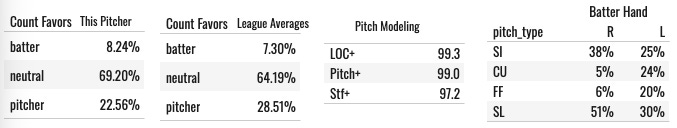 I added a new row of tables to the pitcher profiles this morning: