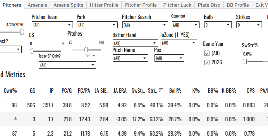 One thing to watch for would be workload. I’m not sure how long he can sustain a 102 Stuff+ and a 15% SwStr% since he’s coming off of a year way under 100 innings coming out of the bullpen. I’m not banking on Detmers being very useful in the second part of this season.