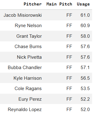 Here’s the other way around, these are the guys most reliant on their favorite pitch: