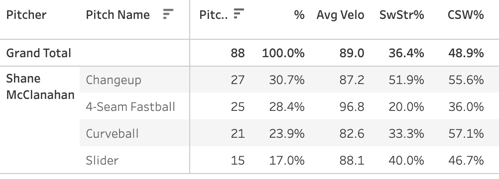 Shane McClanahan - 92 TBF, 37.6% CSW%
