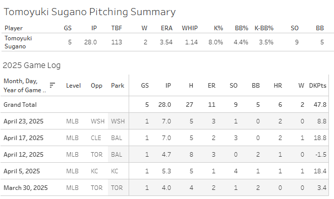 I don’t think there’s a fantasy baseball case to be made for Sugano, but I did want to touch on him just so we can figure out what to expect for other purposes. Streaming, DFS, betting, whatever.