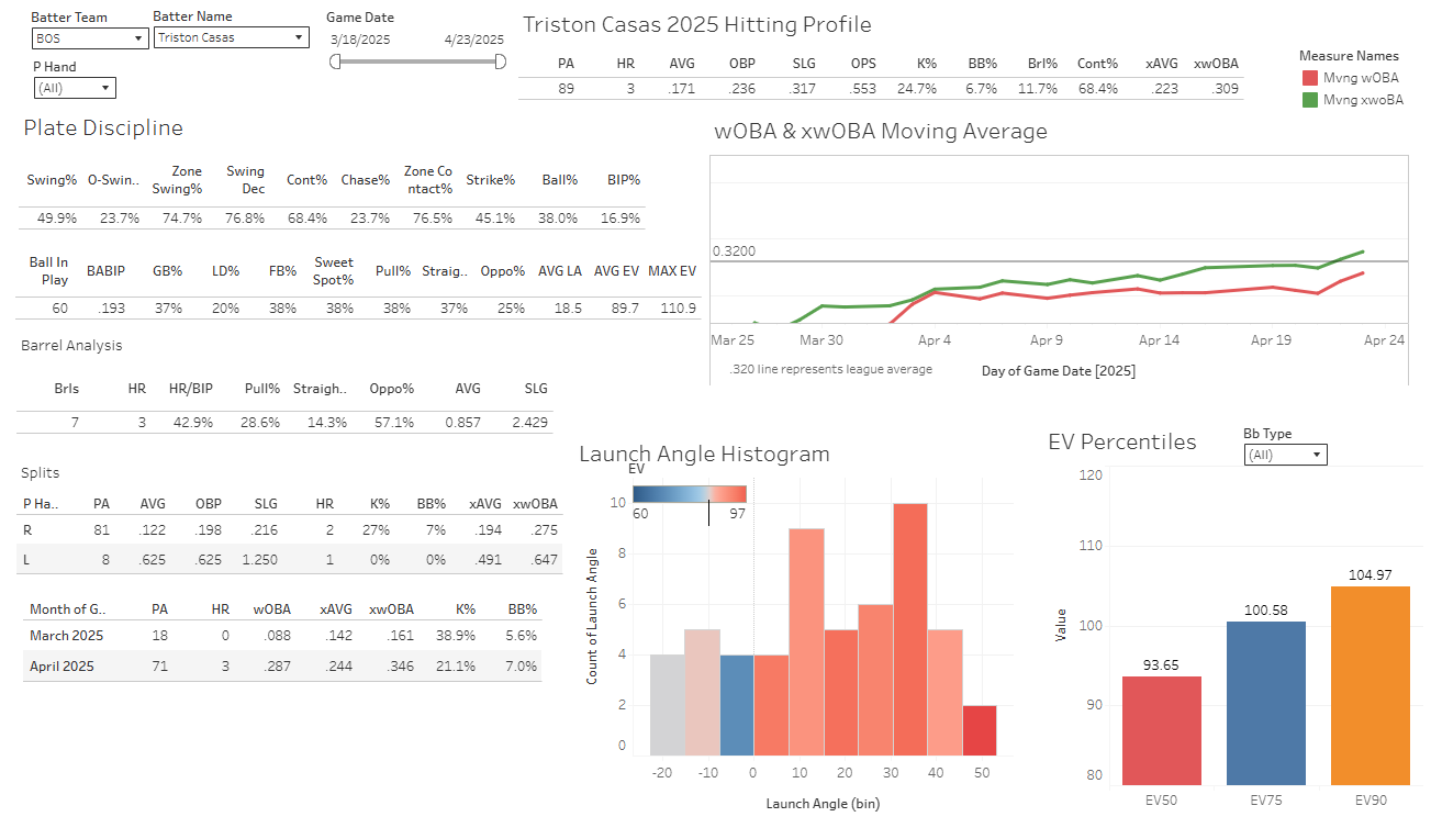.200/.268/.385, 21% K%, 14% Brl%, 3 HR
