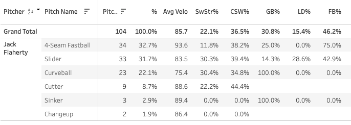 3. Jack Flaherty (STL): 23 Whiffs (104 Pitches)