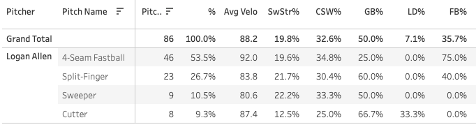 Logan Allen, no not that one - the new one, showed out in his Major League debut yesterday: