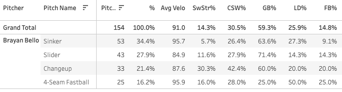Brayan Bello's CH usage (28.0%) up 14.1 points
