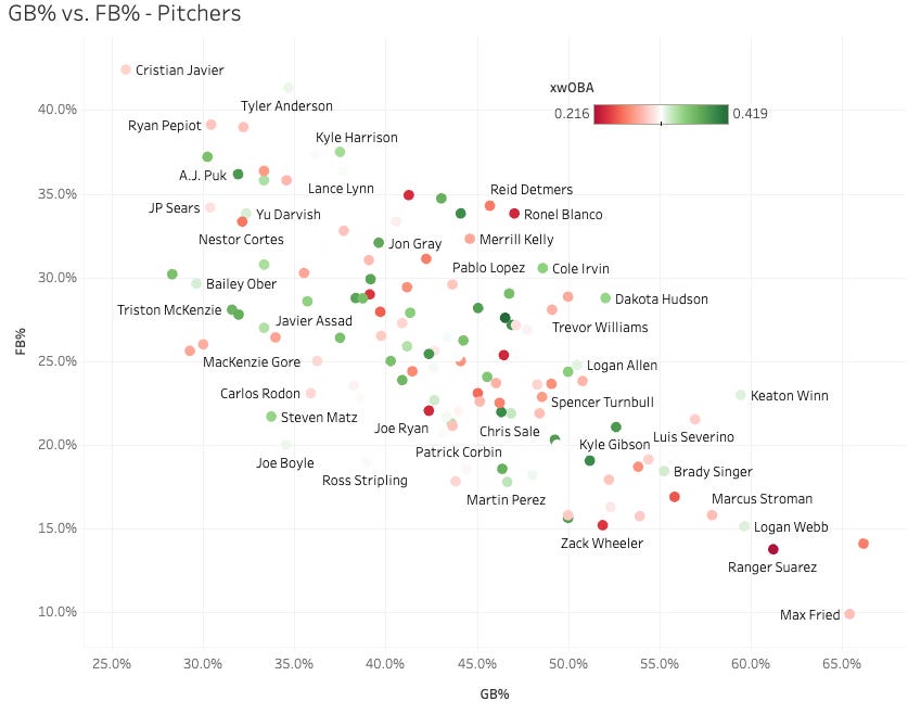 A look at GB% vs. FB% for pitchers this year (four start minimum)