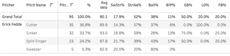Erick Fedde's FC usage (36.8%) up 14.5 points