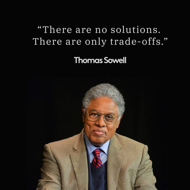 It’s probably a worthwhile trade-off for deGrom, but it’s a great reminder for us of my favorite Thomas Sowell quote, which I use in these daily notes quite often.
