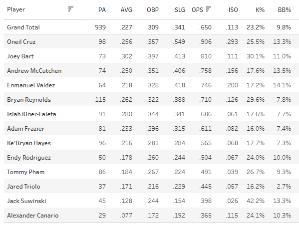 Tyler Anderson got one strikeout but got through six innings for a quality start and a win. The Pirates have Oneil Cruz and then basically nobody else right now. You should be targeting them with any decent SP you can find.