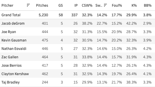 Jacob deGrom - 85 TBF, 39.6% CSW%