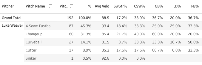 Luke Weaver's FF usage (53.1%) up 15.5 points