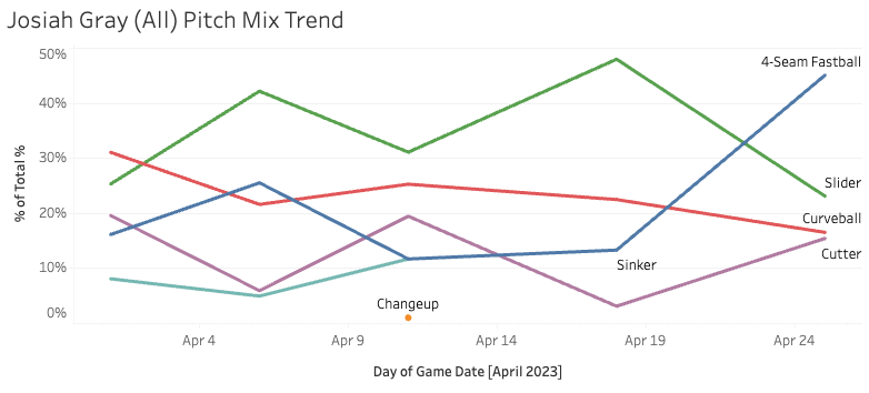 Josiah Gray's FF usage (45.1%) up 26.6 points