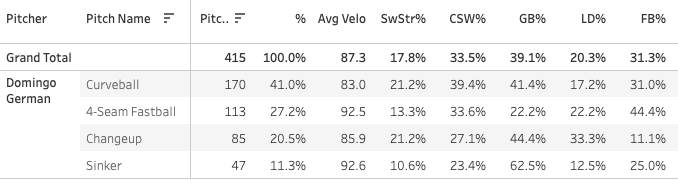 1. Domingo German (NYY): 20.2 SwStr%, 39.3 CSW%