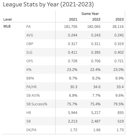 For hitters, everything changes. The pitch quality you’re seeing is suddenly like at least 25% better and you have to hit it. The hitter is reacting, the pitcher is not. I’m not sure if the data actually bears this out, but the 2023 anecdote supports my claim and look, I have a Master’s Degree.