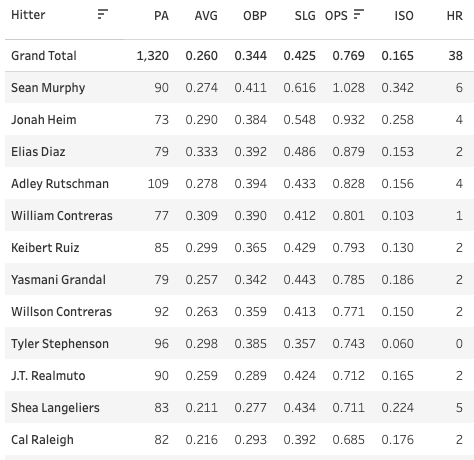 Jonah Heim (aka WhaleBelly CoughingNoise) continues to be one of the league’s best offensive catchers.