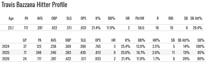 Dominguez is a better add than Bazzana right now, and I do think I’d be giving him a shot in pretty much all roto leagues because of the HR + SB potential. He hit 10 bombs and stole 23 bags last year even while struggling. That shows you something.