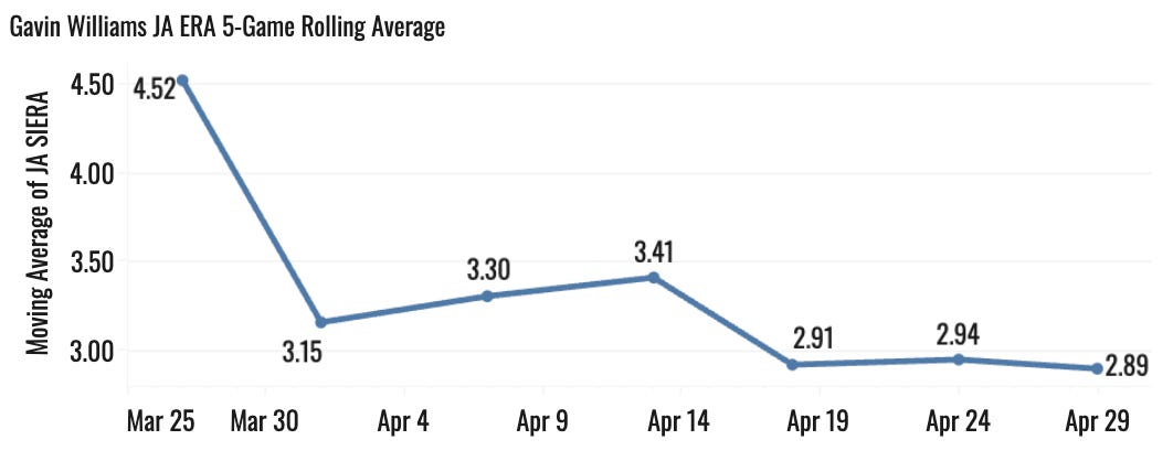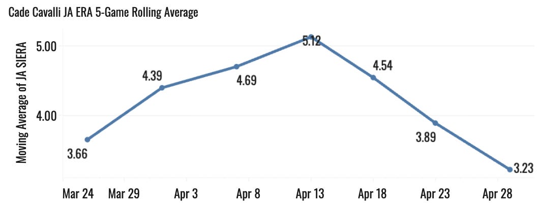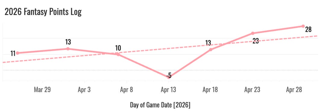 That all turns into a bad 4.19 JA ERA, but he’s made it work so far and had a big 15.8% SwStr% last night to get things looking better. He’s still a risky guy to start with the fly ball rate and the lack of great command.